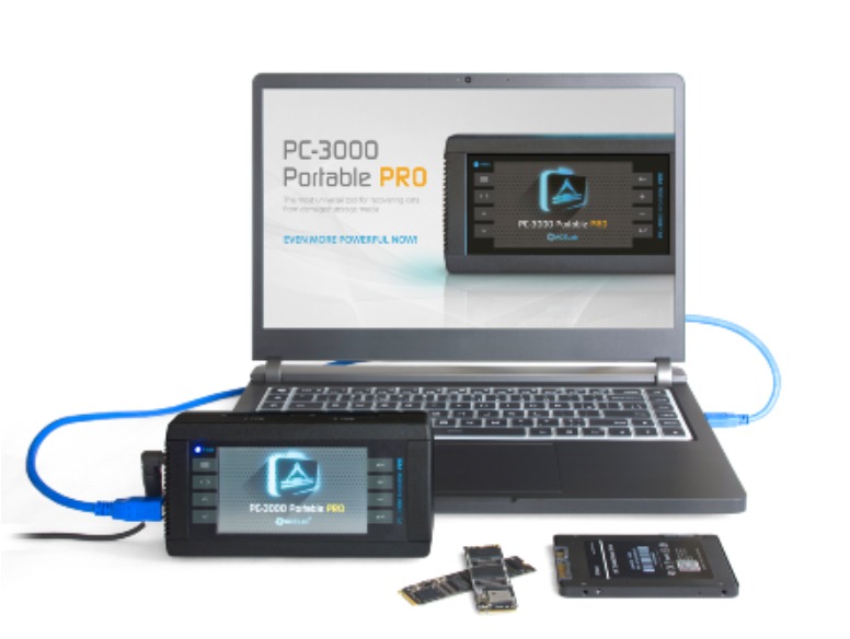 PC-3000 Portable PRO es la Ultima generación de la única herramienta en el mundo para recuperar la mayoría de los datos de casi cualquier tipo de dispositivo de almacenamiento: SATA/PATA/USB HDD, SAS HDD/SSD, SATA (M.2 SATA/mSATA) SSD , M.2 PCIe NVMe/AHCI (Apple Macbook, Apple Macbook PRO A1706/1708, Intel Optane, U.2/U.3, PCIe x16, CFexpress) SSD, RAID y dispositivos NAND Flash lógicamente dañados, tarjetas SD/mSD.